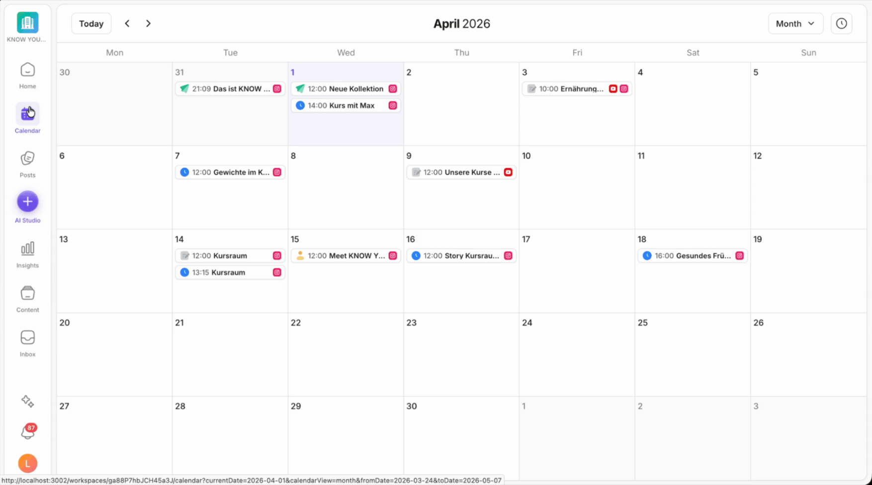 Die visuelle Kalenderansicht zeigt dir genau, was wann wo veröffentlicht wird. Wechsle zwischen Tag-, Wochen- und Monatsansicht. Drag & Drop macht Umplanen so einfach wie nie.