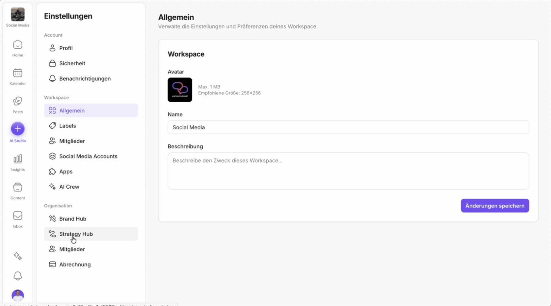Gib Nova deine Website-URL – und sie erstellt automatisch dein Brand-Profil: Tonalität, Kernbotschaften, Zielgruppen-Personas und Content-Säulen. Das Fundament für alle weiteren Inhalte.